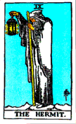 The hermit may withdraw from society to shut out distractions in order to complete spiritual and temporal work - but, he never withdraws from humanity. He continues to give shelter and blessings to travellers, he gives wisdom to the knight on his spiritual quest and he is an example - the guide, always assisting others in transforming their lives. He is someone you trust without reserve, someone you love without limit - he reduces the energy around himself to silence, understanding the higher sphere of spiritual harmony - choosing to create light, silence and certainty. Belief is a feeling of certainty. Confidence is the absence of "doubt". Hope is optimism. Combined they represent the union of thinking, feeling and desire with God - miracles are the fruit of this union. It is essential to your self-sufficiency to perceive where you are in life and to make critical life- direction decisions by yourself. You have made the climb, made your way from opinion to opinion, from belief to belief, from experience to experience and you travel the balanced road of peace. You have come to know the "feeling for truth" and in your heart - action and contemplation are united. Knowledge has become will and will has become knowledge. Use your work as a spiritual path to achieve your higher destiny. Share your wisdom with those who follow - teach them to discard the useless, unnecessary elements on their path, so that they will achieve mastery of "Self", representing completion and clarity. To be yourself derives from choice - examining all thought and feeling, then using the light of your conscious mind and the power of your emotions to concentrate your focus on the results you want. You use your active imagination to move concepts in and out of your mind and project the images in the direction you desire. Your imagination bridges the gaps. Instinctive knowledge and self-realization come from riding your emotions, which lead you to further creative psychological activity. You learn who you are through your creations. If you wish to move forward - arrange your life in a way that will allow you to approach any study in a special way, for only then will you experience ecstasy. Take your time and do your work right with correct planning, properly sowing, constant nurturing and timely harvesting. Confront and pass through the darkness and mystery that is being presented and enter into the light. A guide will appear at the start of your journey, after you have found the strength to begin. Your mind is rich with symbols, with joy, with the light and love of the spirit. Before you can comprehend these things you must first experience "silence". Seek out the spirit guide who will teach you to heal and help you in your self-discoveries. Look carefully at the people around you and through your techniques of meditation, psychic discipline and analysis - the hidden parts of the psyche will be allowed to speak to you as you open yourself to your "inner" awareness - transferring your thoughts and attention from "getting and spending" to your "inner" needs. To achieve this requires emotional withdrawal from the people and "activities" which you consider "all important". When you are involved in helping others find understanding - focus your thoughts on your role as a guide and teacher. Withdrawal in order to get a wider and more objective perspective. The mind's ability to create duality and acceptance of the responsibility to resolve it. An "eye" for an "I," the ability of self to see self, which is impossible without the background of other. Proper memories of the Past balanced with proper projections for the Future. The ability to see inward as well as outward and in equal portions. Formulation of personal philosophy and goals. An important mental pause, a plateau after a significant period of development (assimilating others' views), before going on. Wisdom gained through solitude and silence; the sage in mental seclusion. The gifts of patience and prudence. The impact of instincts on mental processes abates and the impact of intuition increases. Where you have leaned heavily on the situations surrounding your birth package and the conditions of your environment - you now take charge and consciously begin to affect and effect your own future. Your sense of time and purpose is strong as you seek to know and implement the purpose of this incarnation. You begin to realize the contents of your Karmic Contract and to plan and act accordingly. Foundation of the healthy Ego. Autonomy. Formulation of beliefs. Questions to Answer: What are you doing with the time you have to yourself? What are you looking for or what do you need to know? Who can help you find out? What concerns about time do you have? What do you need to keep silent about? What would be the prudent thing to do? What do you need to complete? |